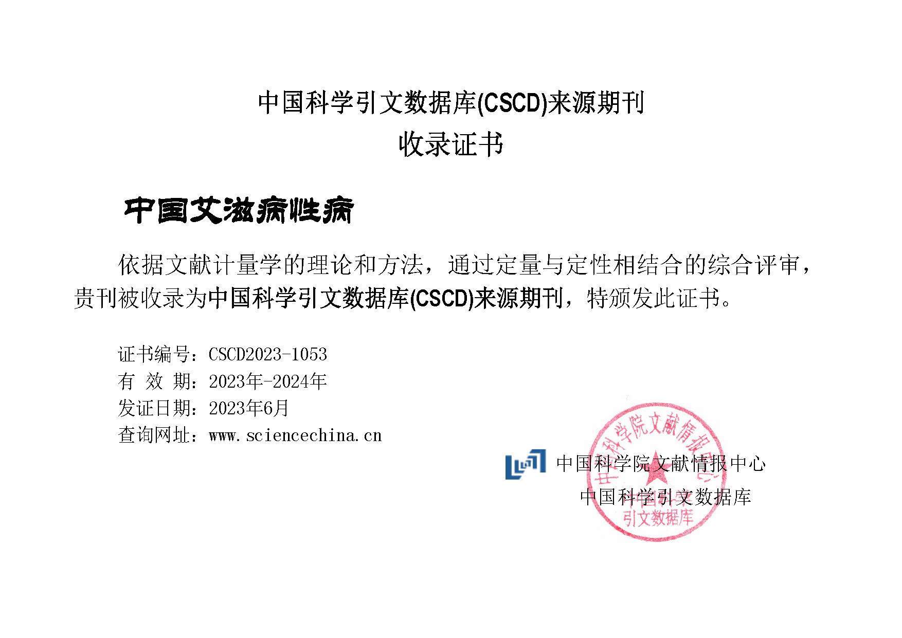 中国科技核心期刊证书(2023-2024年)