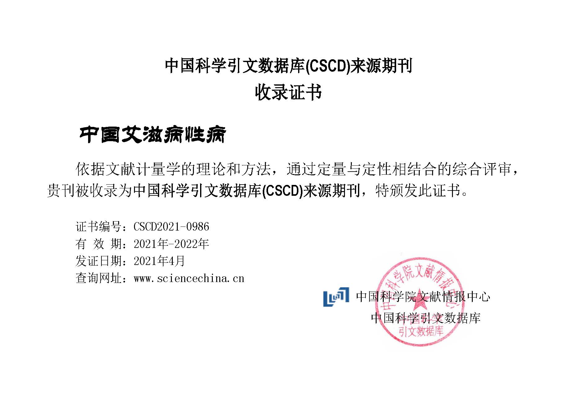 中国科学引文数据库(CSCD)来源期刊收录证书2021-2022年
