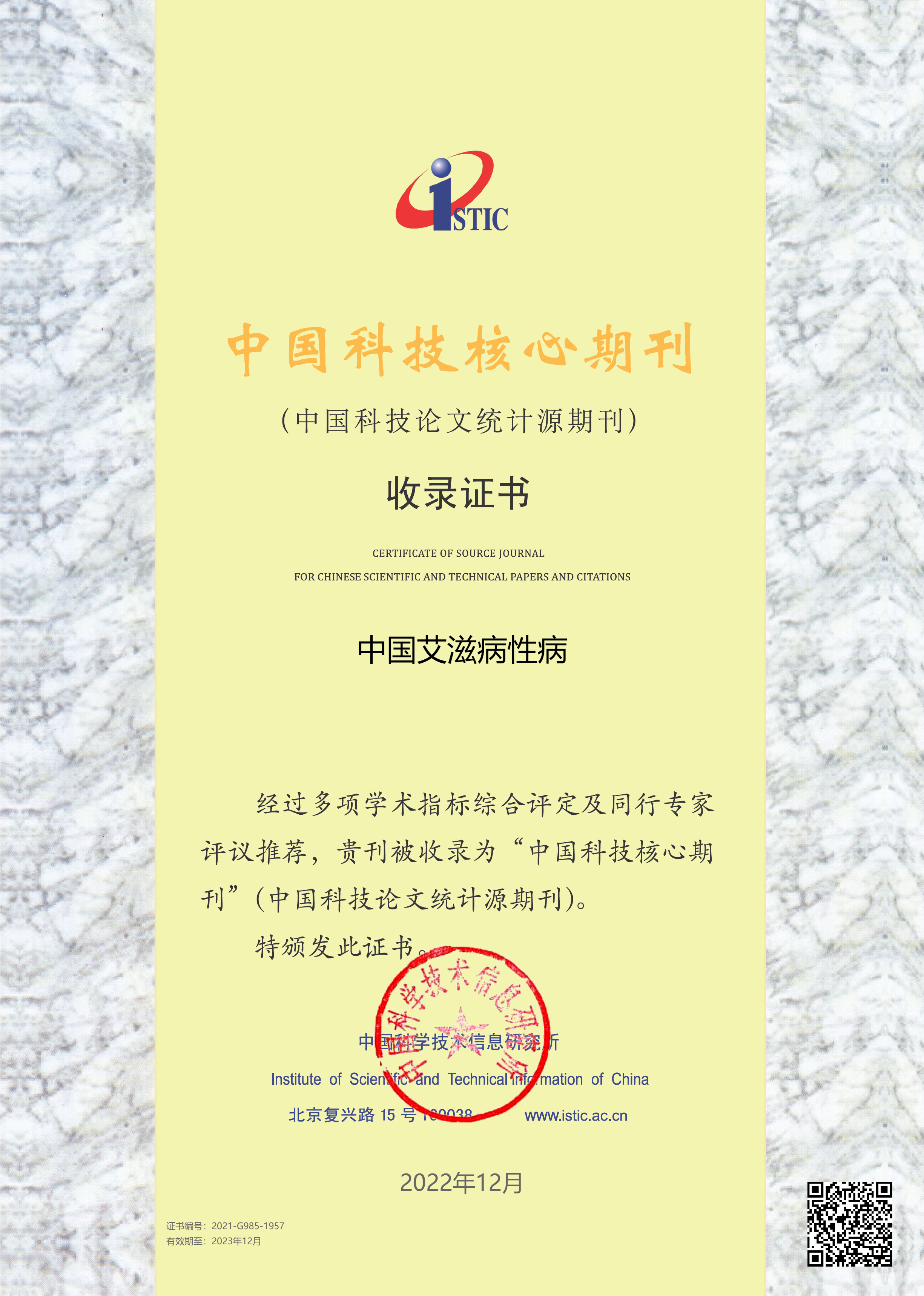 中国科学引文数据库(CSCD)来源期刊收录证书2021-2022年